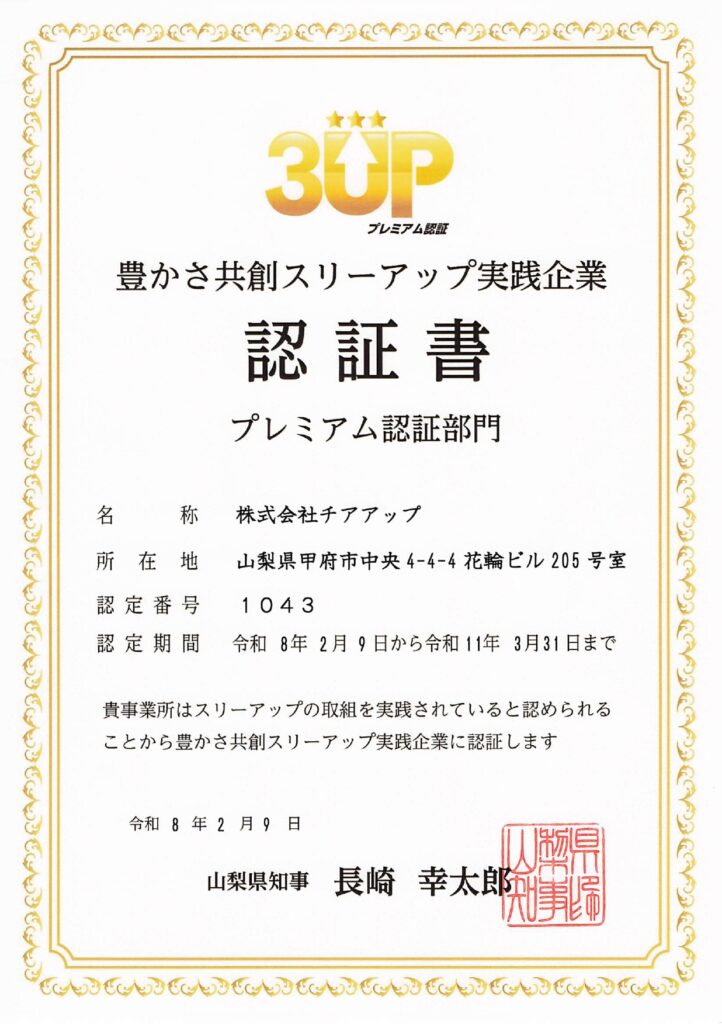 ・スリーアップ実践企業認証制度 (プレミアム認証)取得